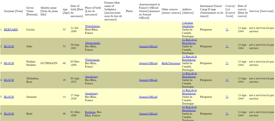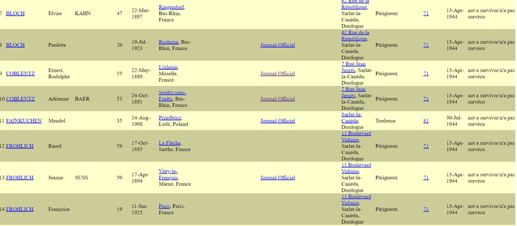 D'après le site https://stevemorse.org/france/ , nous avons compté 285 personnes déportées de Dordogne en 1944 (Serge Klarsfeld dans le livre Le mémorial des enfants juifs déportés de France, en recense 370 sur une carte à propos de 1944). Le dernier convoi comportant des personnes de ce département (le numéro 77) est parti le 31 juillet 1944. "Le 31 juillet, 1 300 personnes, dont 300 enfants, quittent Drancy en direction de l'Allemagne" nous dit Le Mémorial de la Déportation des Juifs de France édition 1978. C'est l'avant dernier parti de France. Le dernier, le 79, part le 17 Août de Paris peu avant la libération de la capitale !